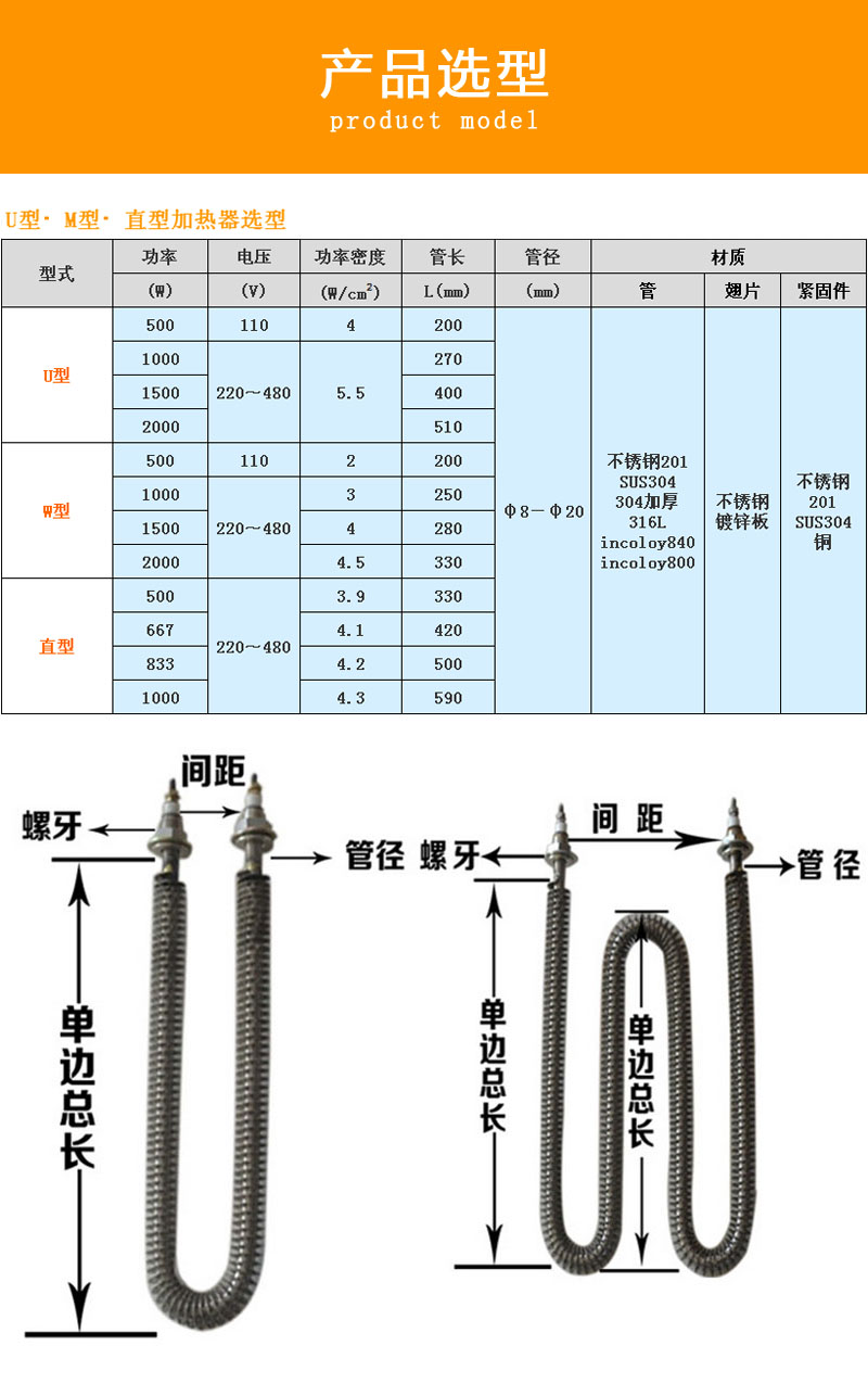 測試負(fù)載電阻棒采用優(yōu)質(zhì)不銹鋼、進(jìn)口氧化鏷粉、高電阻電熱合金絲、不銹鋼散熱片等材料,通過先進(jìn)的生產(chǎn)設(shè)備和工藝制作而成,翅片電加熱管可以安裝在吹風(fēng)管道中或其它靜止、流動空氣的加熱場合。它與普通加熱管相比,散熱面積擴(kuò)大了2~3倍,即翅片元件所允許的表面功率負(fù)荷是普通元件的3~4倍。由于元件的長度縮短,使得本身的熱損失減小,在相同的功率條件下,具有升溫快、發(fā)熱均勻、散熱性能好、熱效率高、使用壽命長、加熱裝置體積小,成本低等優(yōu)點(diǎn)。根據(jù)用戶要求進(jìn)行了合理的設(shè)計,便于安裝。產(chǎn)品在機(jī)械制造、汽車、紡織、食品、家電等行業(yè),尤其在空調(diào)器風(fēng)幕行業(yè)得到廣泛應(yīng)用。