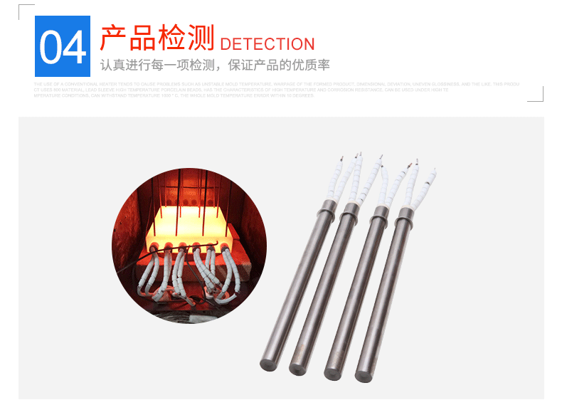 熱彎?rùn)C(jī)成型模具電加熱棒是根據(jù)客戶的高溫要求來(lái)設(shè)計(jì)生產(chǎn)的??蛻粲捎谝蟾邷貤l件下使用單頭電熱管,而在高溫條件下,單頭電熱管的高溫管會(huì)出現(xiàn)熔化現(xiàn)象,因此用瓷珠來(lái)代替高溫管,可以防止熔化,增長(zhǎng)使用壽命。深圳新宏大電熱科技有限公司根據(jù)20多年生產(chǎn)單頭加熱棒的經(jīng)驗(yàn)和技術(shù),專注研發(fā)生產(chǎn)優(yōu)質(zhì)高端熱彎?rùn)C(jī)模具用耐高溫單頭電加熱棒,并提供熱彎?rùn)C(jī)溫度均勻技術(shù)解決方案。